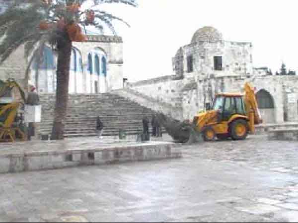 עבודות עם כלים כבדים באזור שממערב לכיפת הסלע.