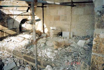Construction near the entrance of ‘Solomon Stables’. In the center of the picture a pillar capital can be seen.