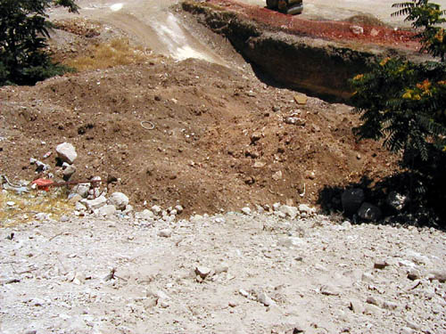 The new sewer can be seen in this photograph. The earth dug from the sewer covers the rubble dumped from the Temple Mount.