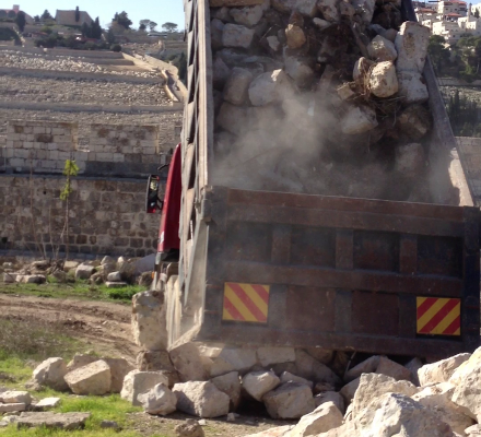 - איור 4: משאית שופכת אבנים ועפר ממקור לא ידוע.