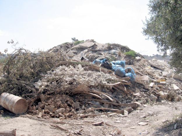 - איור 3: התלולית שממנה העמיס הטרקטור עפר. ניתן לראות ערבוב בין הפסולת לבין העפר.