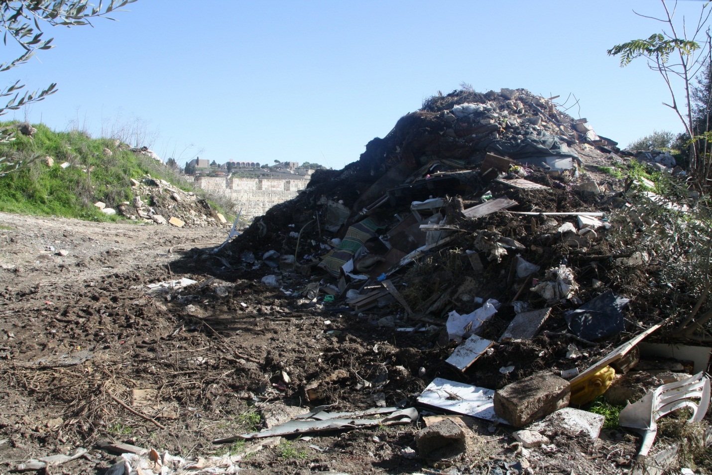 - איור 1: אחת מערימות שפכי העפר והפסולת שנערמו בהר הבית כתוצאה מהאיסור שהטיל בג"ץ על פינוי העפר.