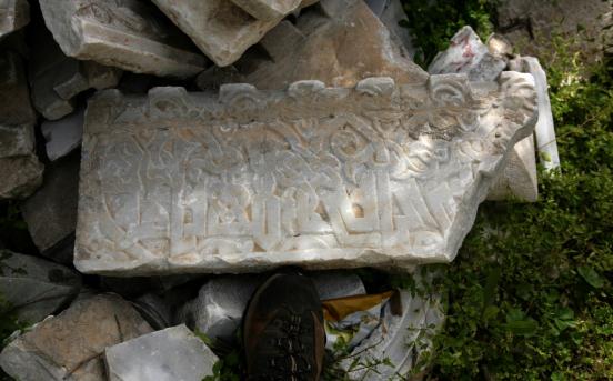 מערום ענק של פריטים ארכיטקטוניים קדומים וביניהם כתובות מונומנטליות מהתקופה האיסלמית הקדומה