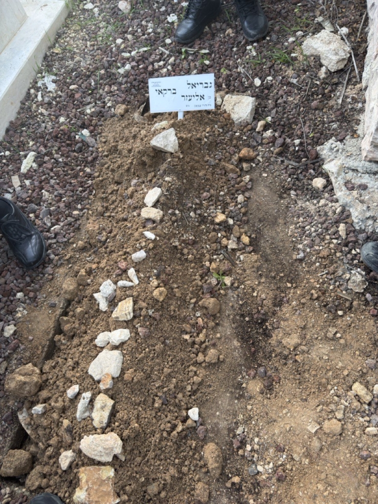 גבי היה איש של זכרון כראוי לו קברנו אותו עם זכרון. שילבנו בעפר קברו גם עפר מהר הבית. עפר במרקם אפור בשל כמויות האפר הרבות הטמונות בו כתוצאה מחורבן בית המקדש.