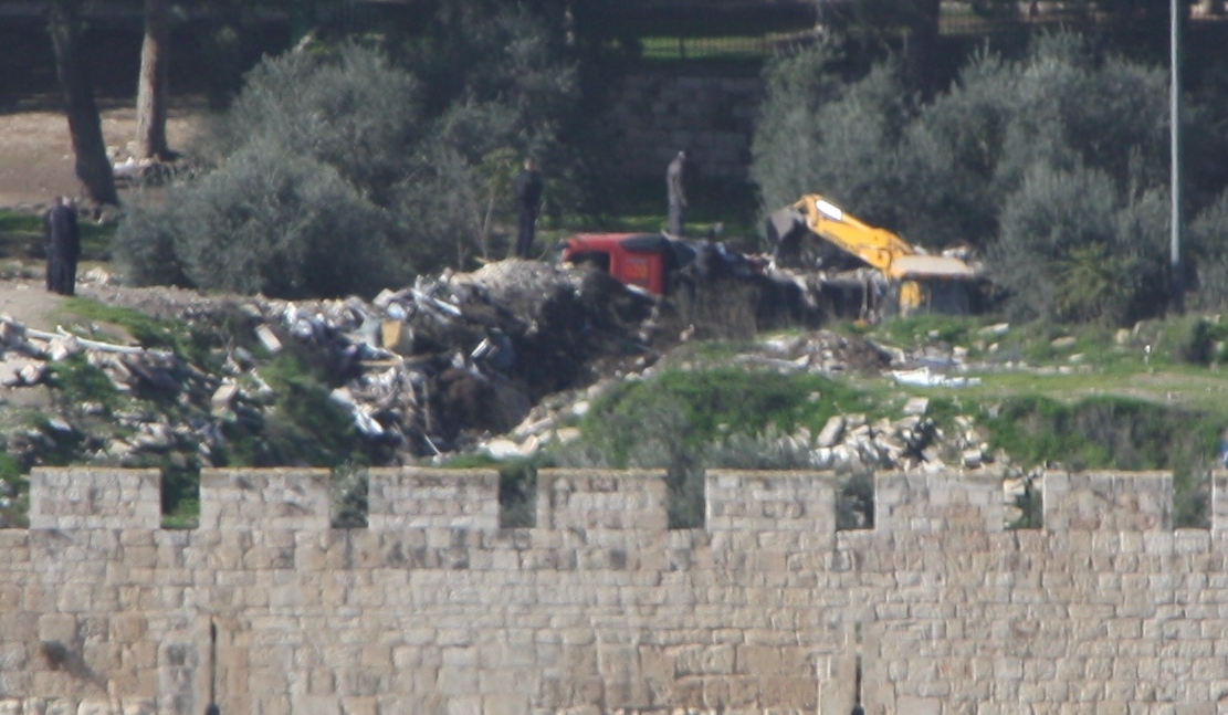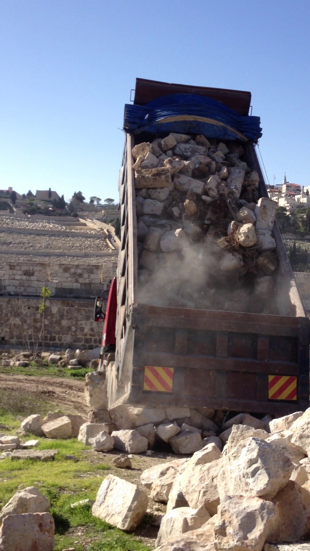 About 6-8 truckloads of debris were removed on Sunday and Monday, December 23 and 24 . On Monday we followed one of the trucks and found out that it dumped its contents in an illegal garbage dump near the village El-Azariya. Since then the Wakf has stopped removing debris from the Temple Mount. We don’t know whether it is because they noticed we are following them, or because the publicity of the story caused the Prime Minister to postpone this removal until after elections.