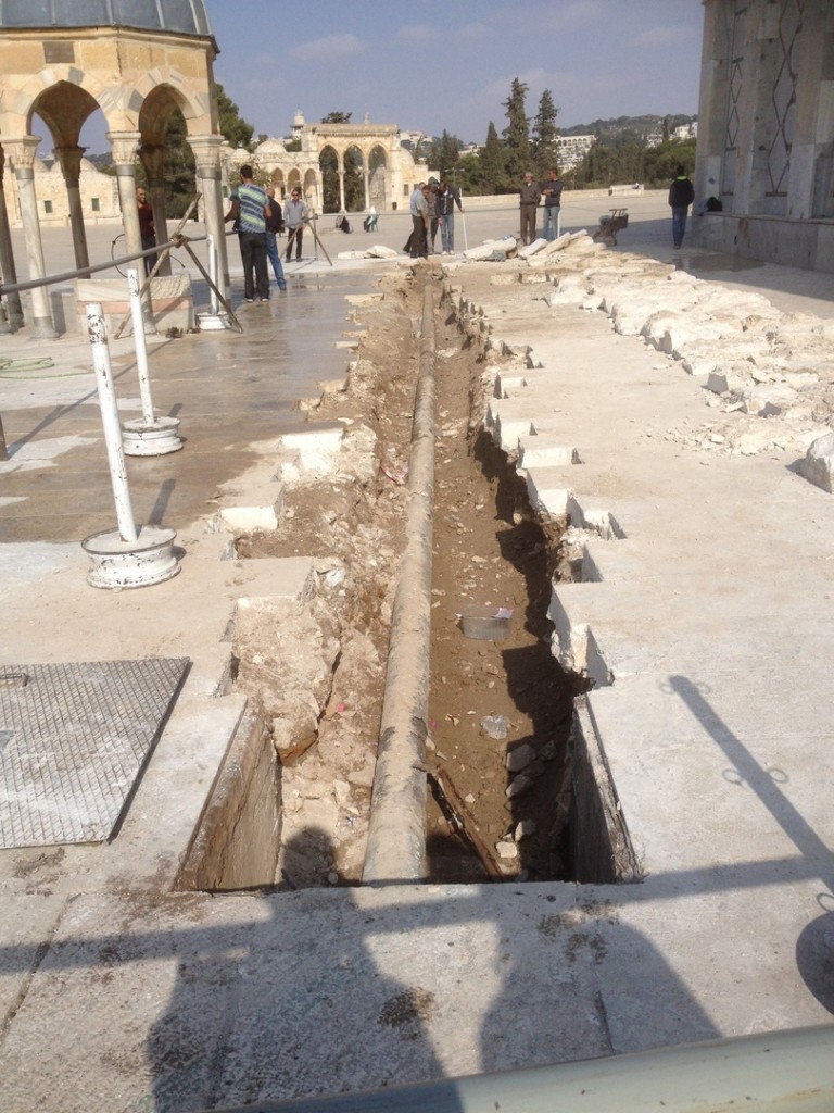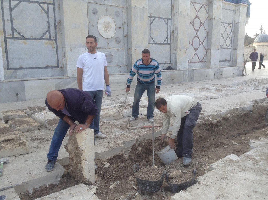 Yesterday the Waqf began a new small scale construction dig just a few meters from the northwest side of the Dome of the Rock. The purpose of the work was to expose an old water pipe in order to replace it.