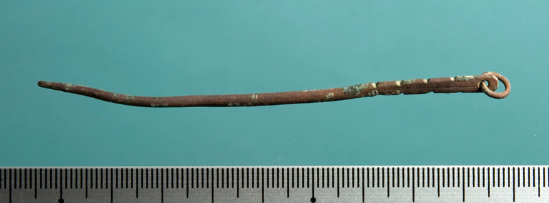 Since textiles are made of organic material, they are very rare in the archaeological record – and embroidered textiles even more so. Nevertheless, many clothing-related finds were recovered in the sifting, including fibulae (dress fasteners), buckles, buttons, and spindle whorls for spinning thread. At times, even rarer discoveries turn up—“like a needle in a haystack”—such as an ancient bronze needle whose date has not yet been determined.