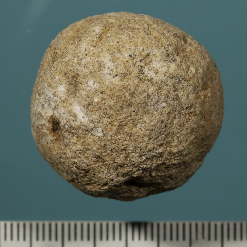 This slingstone joins a handful of other flint and limestone spherical stones, usually larger in diameter than this one. The presence of such a projectile on the Temple Mount underscores the tactical nature of the Babylonian siege (or perhaps the Assyrian siege 115 years earlier). The sling was equally vital for the aggressor. As Babylonian forces advanced on the 10th of Tevet, their slingers would have used high-velocity stones like this to provide suppressive fire, clearing the Judean defenders from the parapets and gate towers so that siege ramps could be constructed.
