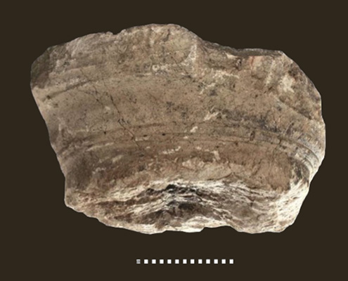 כותרת עמוד בסגנון הדורי, עשוייה אבן גיר. השתמרה לגובה 36 ס"מ, בקוטר 75 ס"מ בבסיסה.